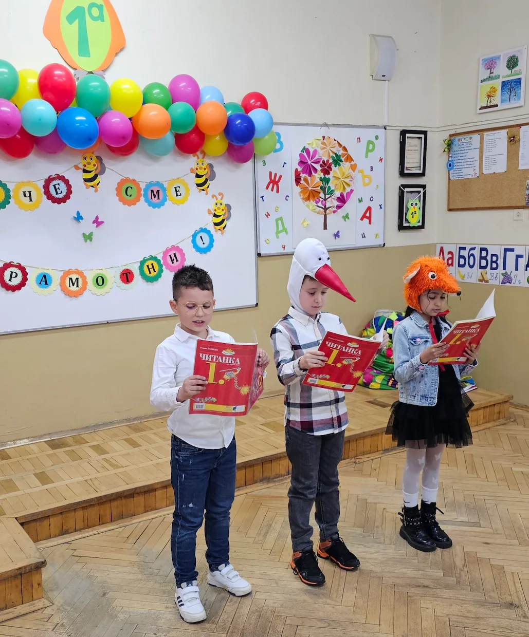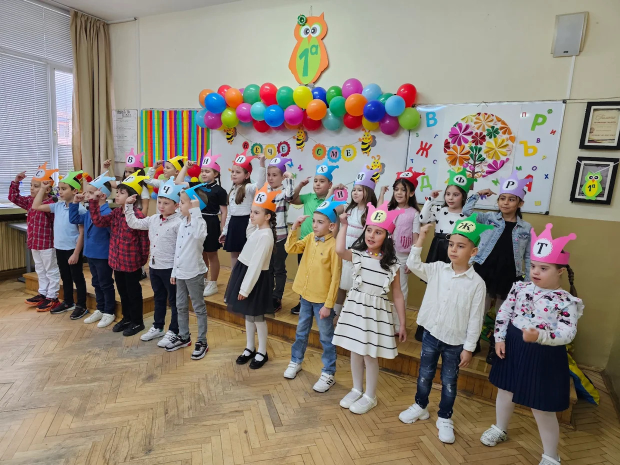 На 15.04.2025 г. учениците от 1.а клас празнуваха! След месеци на упорит труд дългоочакваният "Празник на буквите" настъпи. Тържеството премина в стихчета и песни за буквичките от българската азбука, за препинателните знаци, за приятелят - Букварче и новата Читанка. Получи се весел и пъстър празник, като всеки един от учениците показа колко много беше научил и колко хубаво е да си в първи клас.